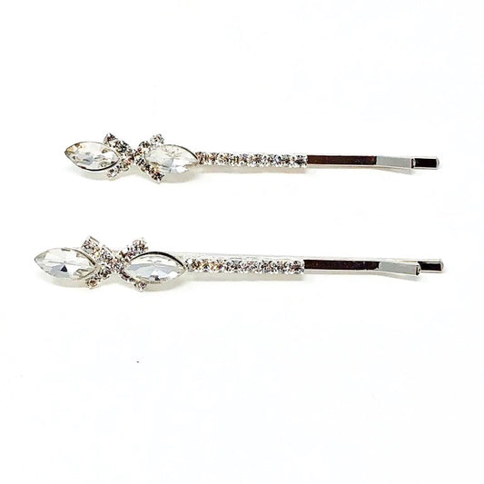 Oval Crystal Centered Hair Pin 2-pack Silver/Clear