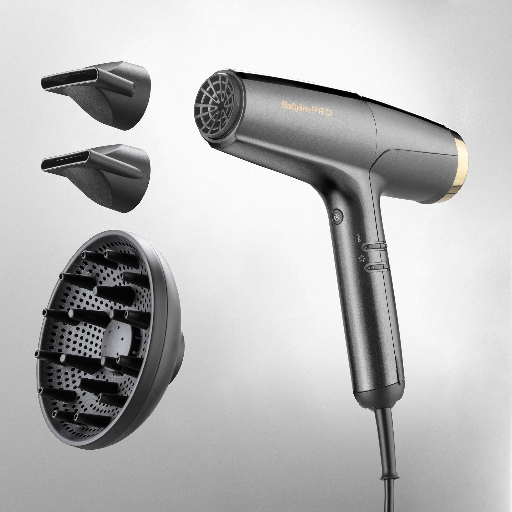 BaByliss PRO Falco har et lydnivå på kun 70 dB som er deres mest stillegående hårføner noensinne. Den høyhastighets digitalmotoren på 2000 W leverer overlegen luftstrøm og lufttrykk, mens det eksklusive utslippsgitteret optimaliserer lufthastigheten. Resultatet er rask og effektiv tørking, samtidig som håret beskyttes mot overoppheting.