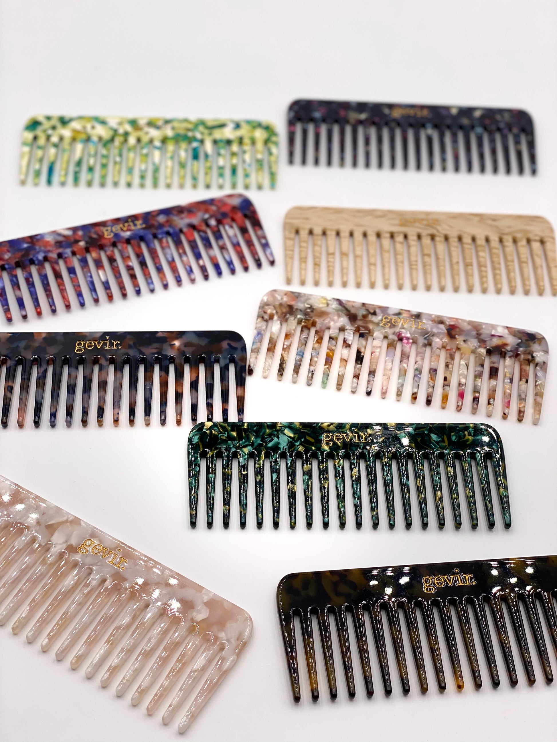 Gevirs tortoiseshell kam er håndlaget av verdens fineste acetat av høy kvalitet.