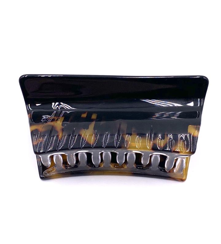 Spennene er polert for hånd for å skape en myk glans. De skilpaddeskall mønstrede klypene er formet med vide hakk for å unngå å skade håret.