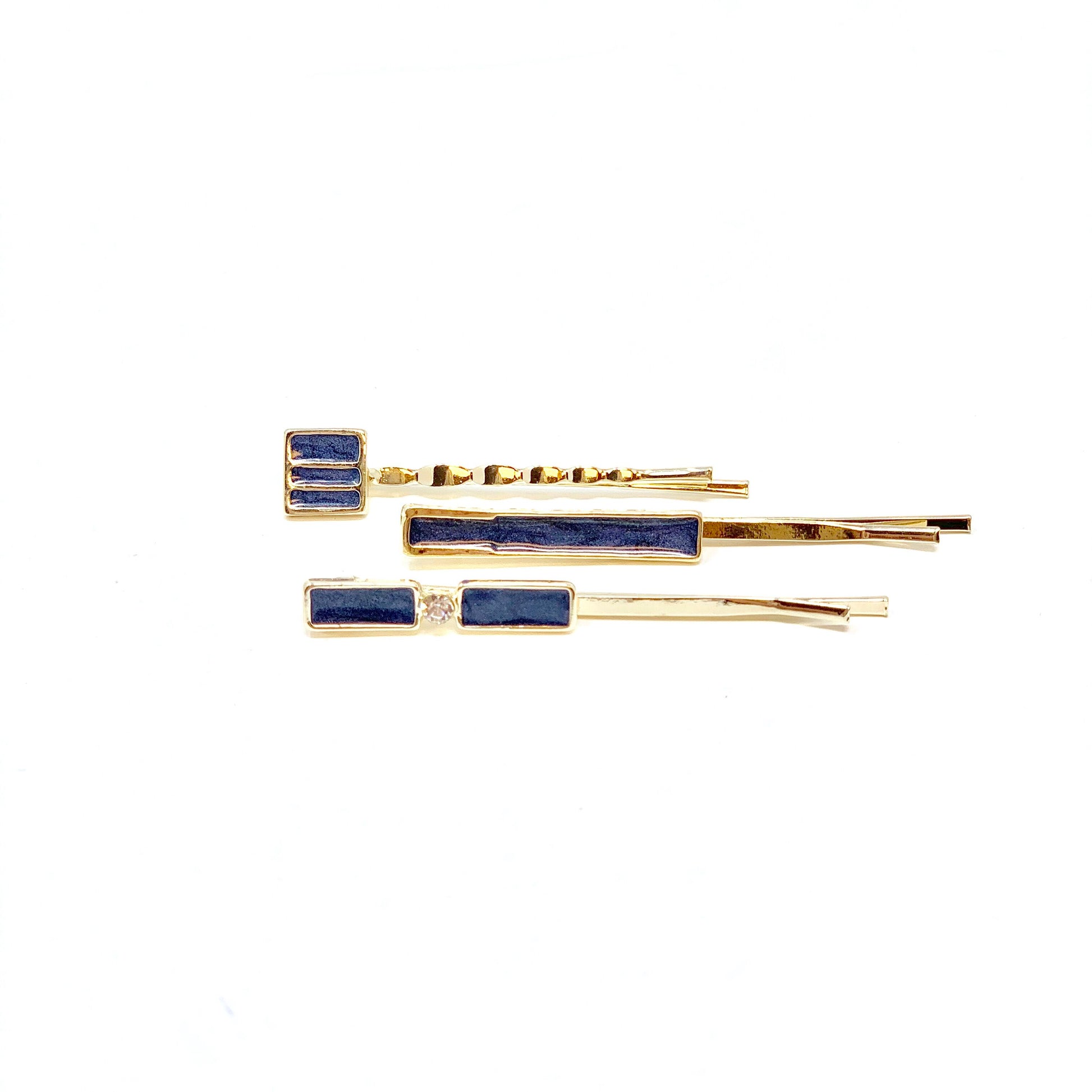 Denne luksuspakken inneholder 3 vakre hårnåler i blått og gull